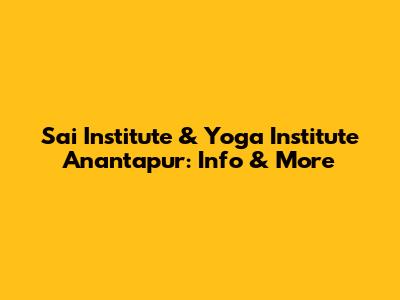 Sai Institute & Yoga Institute Anantapur: Info & More